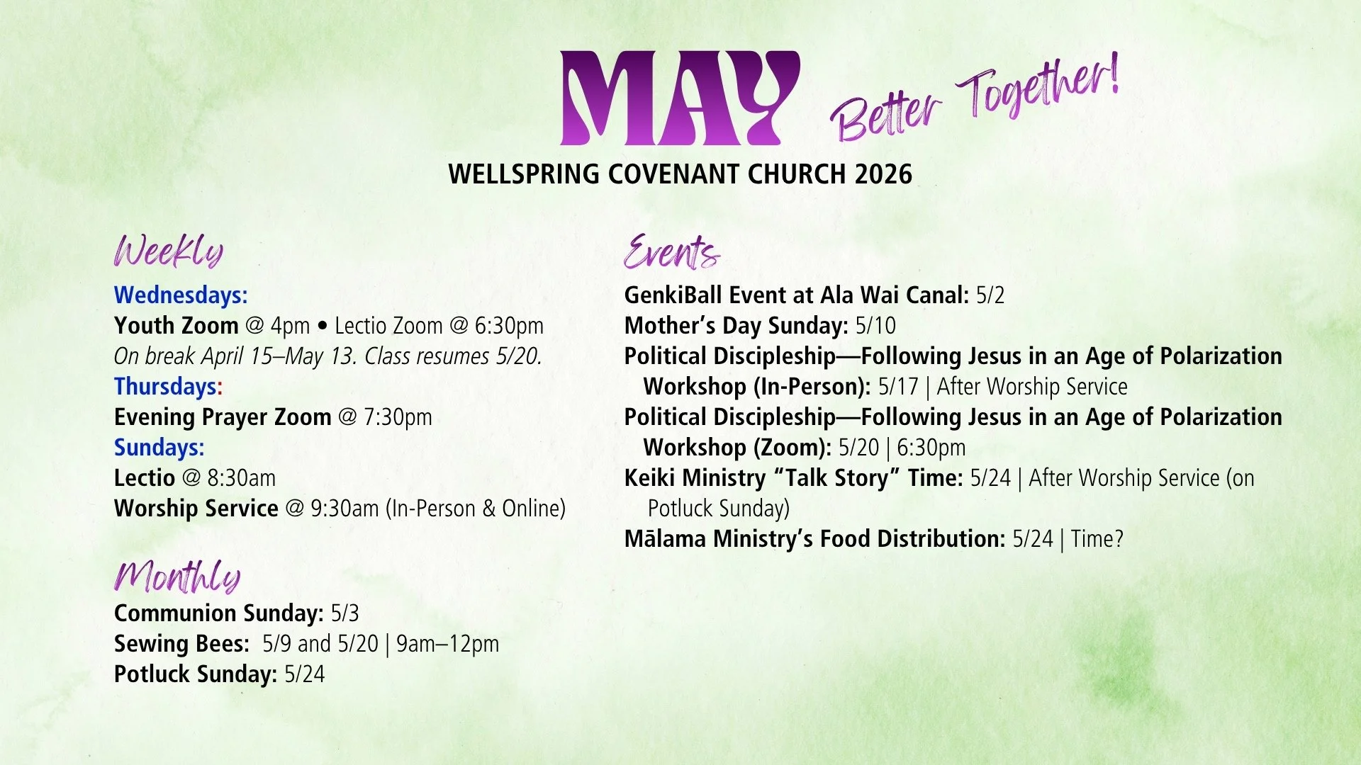 Join InterVarsity Hawaiʻi & Wellspring Covenant Church every first Monday as we intercede for the healing, protection, and cleansing of our water.