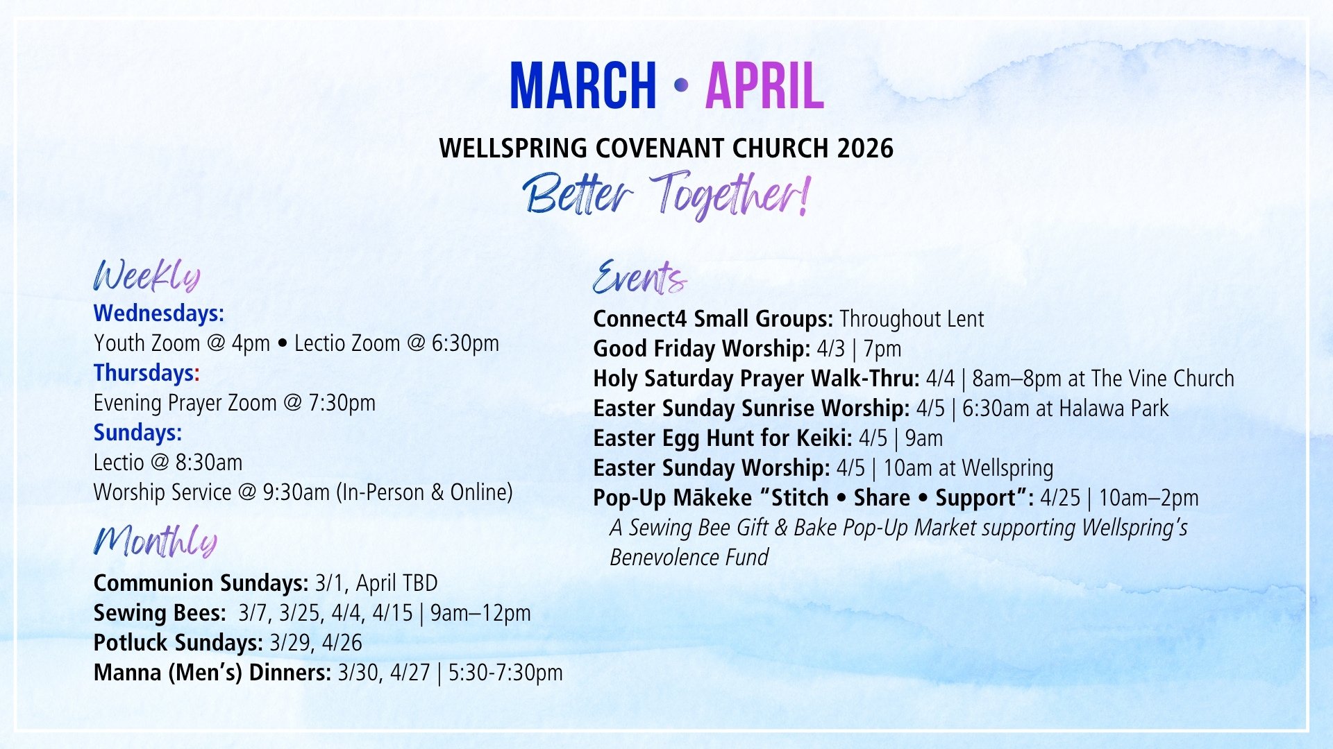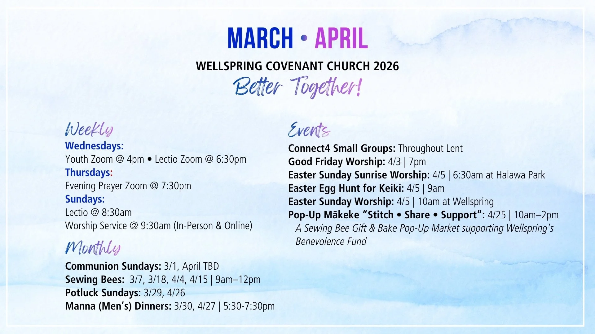 Join InterVarsity Hawaiʻi & Wellspring Covenant Church every first Monday as we intercede for the healing, protection, and cleansing of our water.